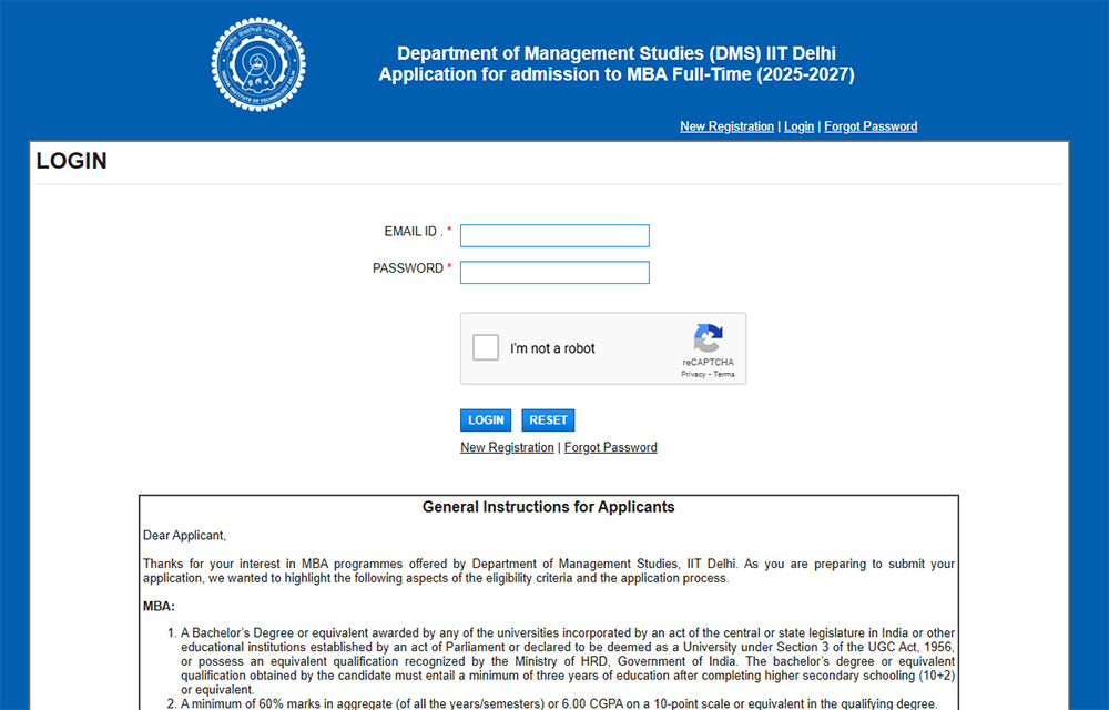 IIT Delhi MBA Application Form 2025 (Application form for 2026 is yet to open)